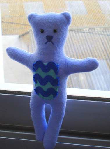 Si se desea se pueden bordar los ojitos, así, si es para algún niño no hay ningún peligro pues el resto es todo una pieza salvo el detalllito de delante que va cosido, mide 19 cms de alto.